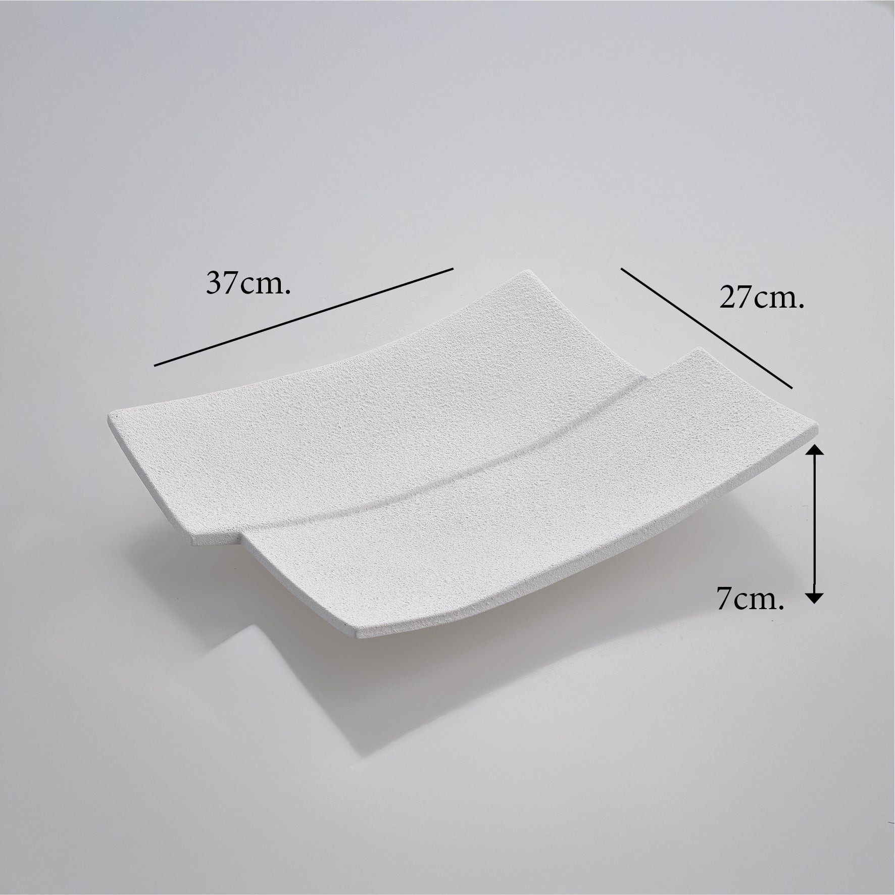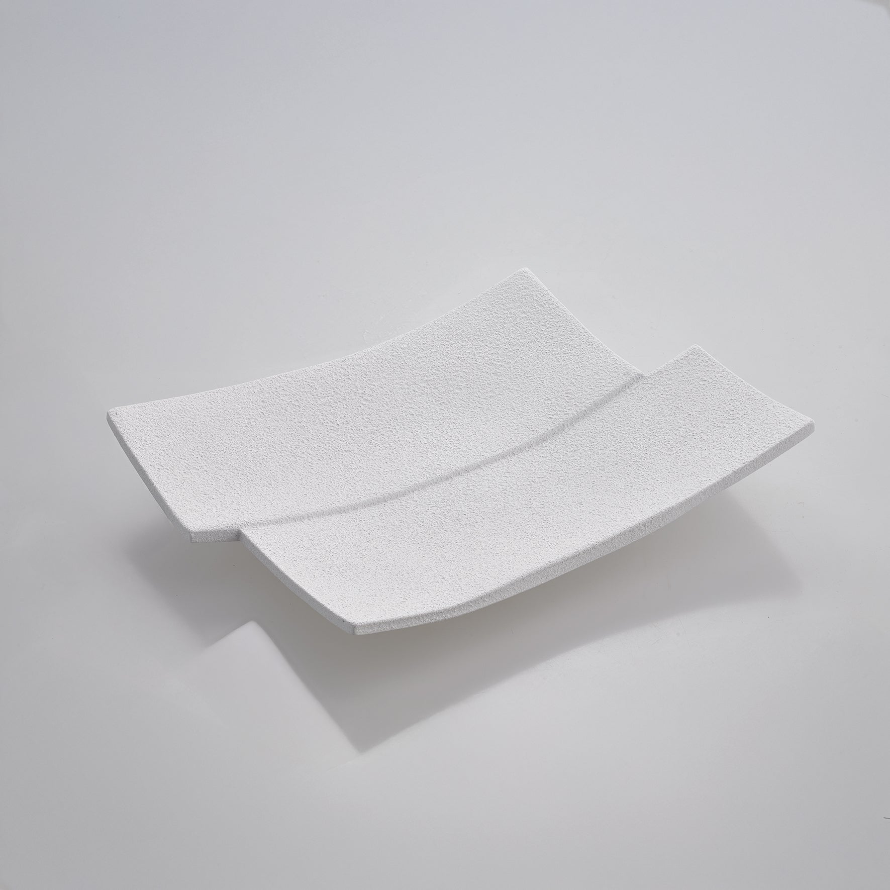 Il centrotavola “Rettangolo” in ceramica bianca unisce design essenziale e grande impatto visivo.